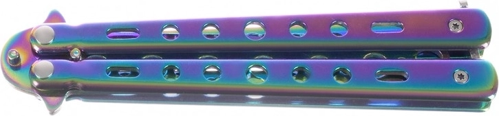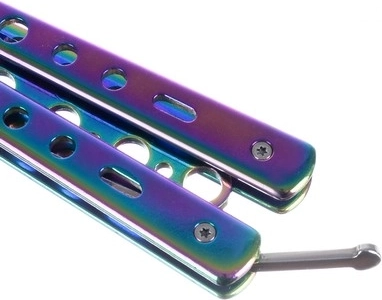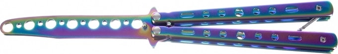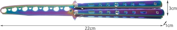 Deze trainingsbalisong is ontworpen voor veilig leren van flips, trucs en handlingtechnieken. De stompe, afgeronde snede kan niet worden geslepen, wat het risico op letsel tijdens training minimaliseert. De metalen constructie met stijlvolle kameleon- (iriserende) afwerking zorgt voor duurzaamheid en een aantrekkelijk uiterlijk.