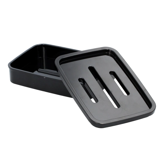 Praktische tweedelige zeepbak van hoogwaardige kunststof houdt je zeep droog, schoon en hygiënisch. De uitneembare inzet met afvoersleuven leidt water naar het onderste deel, wat de levensduur van de zeep verlengt en zompig worden voorkomt. Dankzij de compacte afmetingen ideaal voor de badkamer, op reis, kamperen en in de sportschool, en het moderne, gemakkelijk te reinigen design past in ieder interieur.
