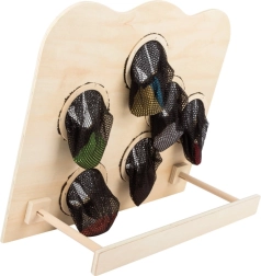 Ontdek eindeloos plezier met het houten werpspel Afrika, dat een geweldige keuze is voor kinderen vanaf 3 jaar. Het spel verbetert niet alleen de coördinatie tussen hand en oog, maar ondersteunt ook motorische vaardigheden terwijl kinderen proberen de openingen van verschillende groottes te raken met kleurrijke zakjes.