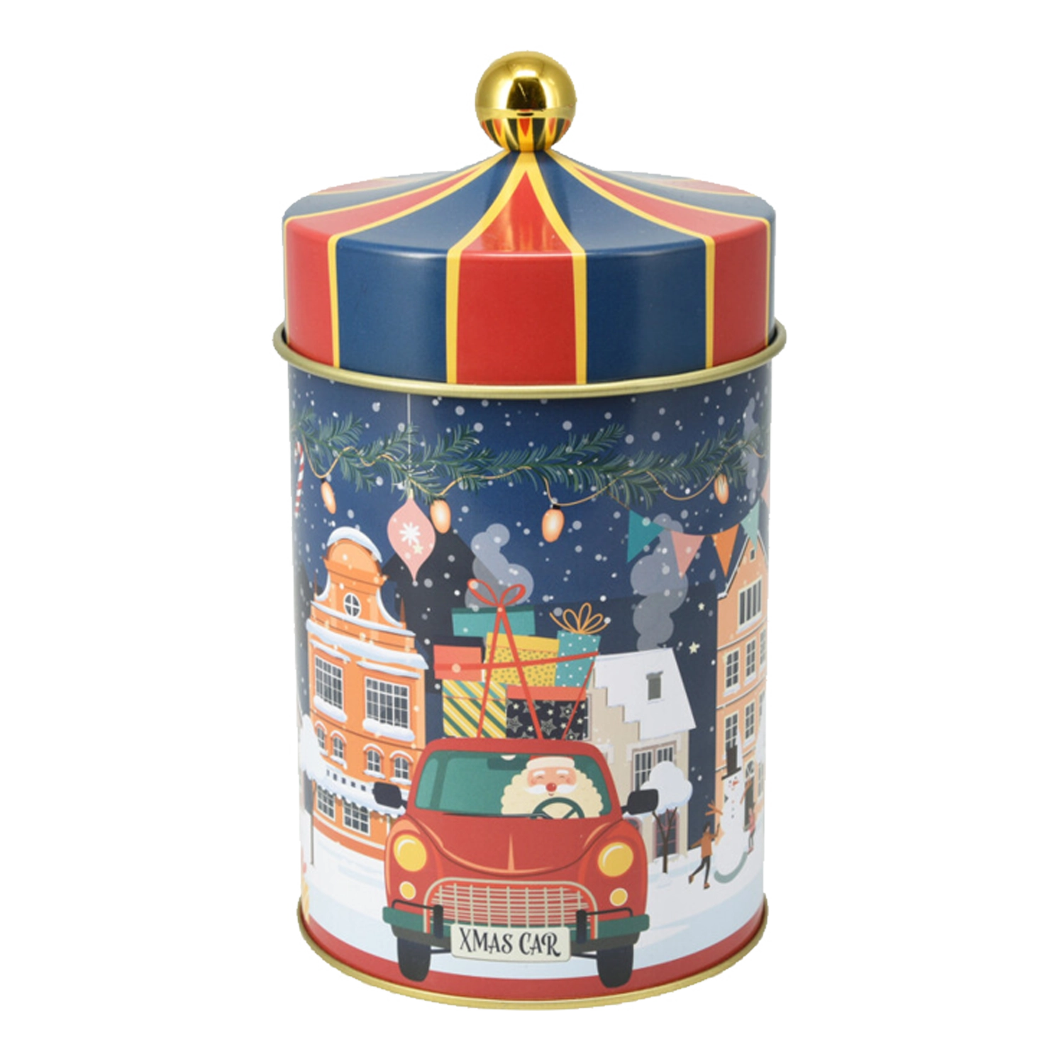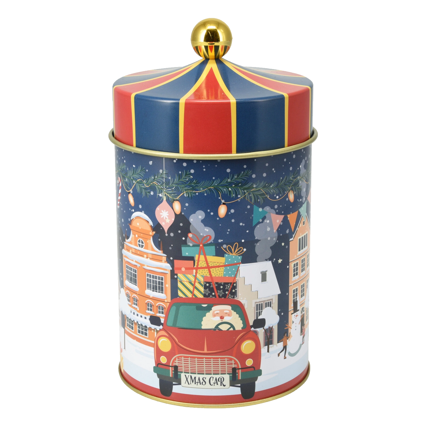 Vrolijke winterse illustraties met de opschriften “Xmas Car” en “Hello Winter” geven je huis een knusse, feestelijke sfeer. De trommel is perfect voor koekjes, peperkoek, snoep, maar ook voor kleinigheden zoals theezakjes of kleine cadeautjes. Dankzij de veelzijdige look is hij ook geschikt als een lief kerstcadeau.