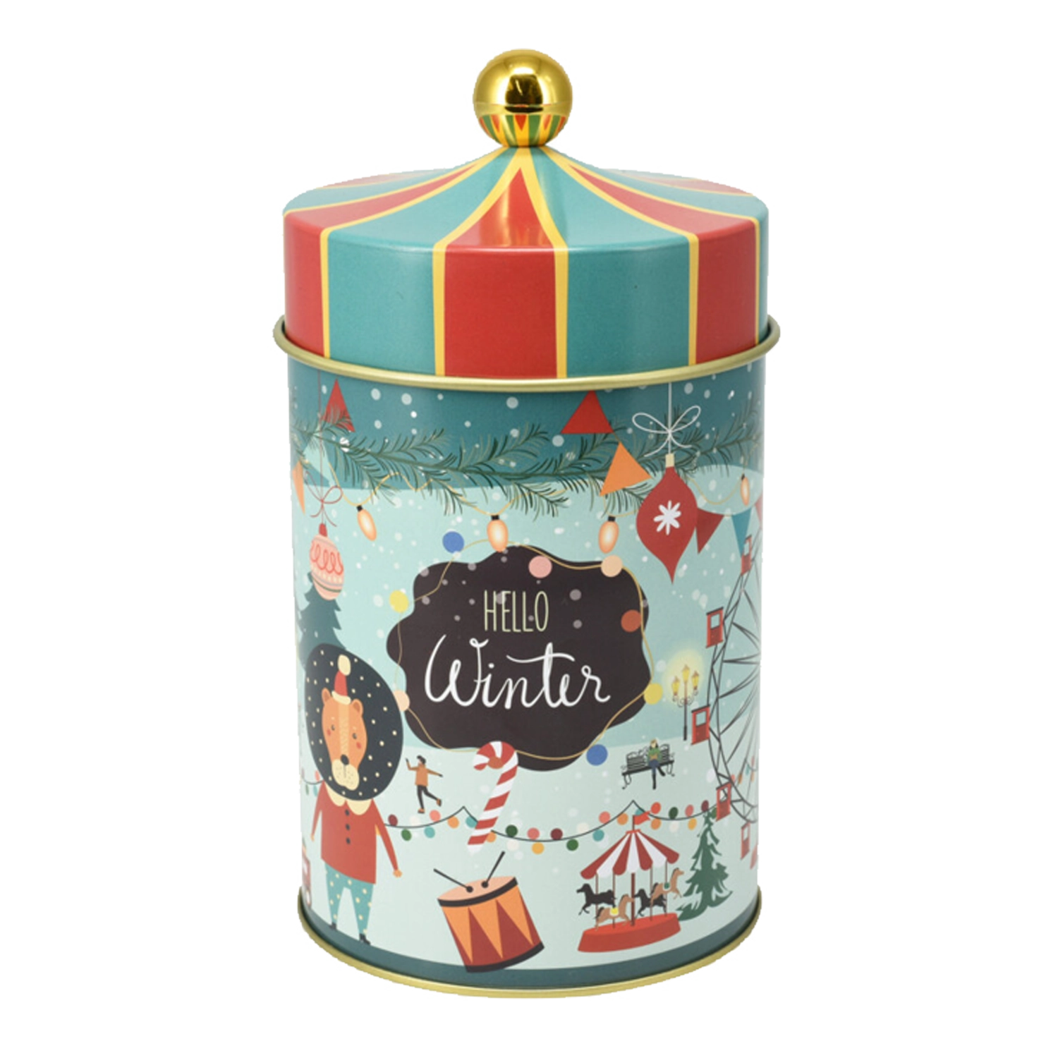 Deze ronde metalen trommel combineert praktische opslag met een opvallend winterdesign. De stevige constructie van duurzaam metaal en het goed sluitende deksel helpen lekkernijen te beschermen tegen vocht en lucht, zodat ze langer knapperig en geurend blijven. De compacte afmetingen maken het eenvoudig om hem op het aanrecht, een plank of in het dressoir te plaatsen.