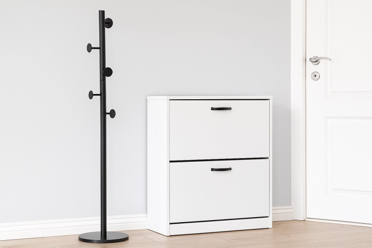 De kapstok Reda is een stijlvolle toevoeging aan elk interieur. Zijn minimalistische silhouet past in zowel moderne als klassieke ruimtes, terwijl de compacte footprint ruimte bespaart in de hal. De vrijstaande constructie vereist geen boren in de muur – je plaatst hem eenvoudig waar je hem nodig hebt.
