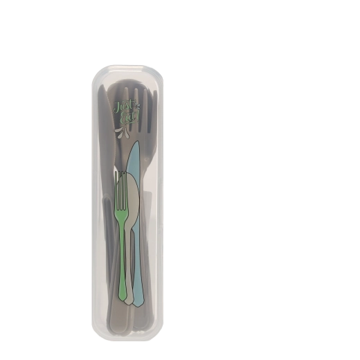 Het transparante reisetui houdt lepel, vork en mes schoon en veilig opgeborgen. Perfect voor in tas, rugzak of lunchbox.
