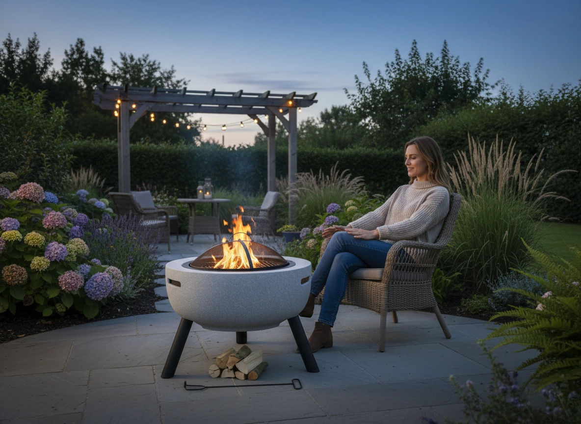 Een elegante tuinvuurplaats op poten maakt van elke avond een sfeervol samenzijn. Dankzij de duurzame MgO-schaal, de praktische vonkenvanger, de pook en het grillrooster combineert hij veiligheid, functionaliteit en modern design – ideaal om te verwarmen en voor het bereiden van lichte hapjes in de tuin.