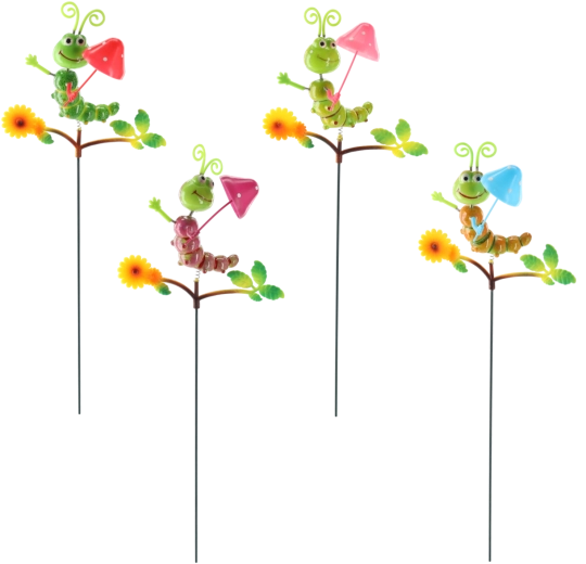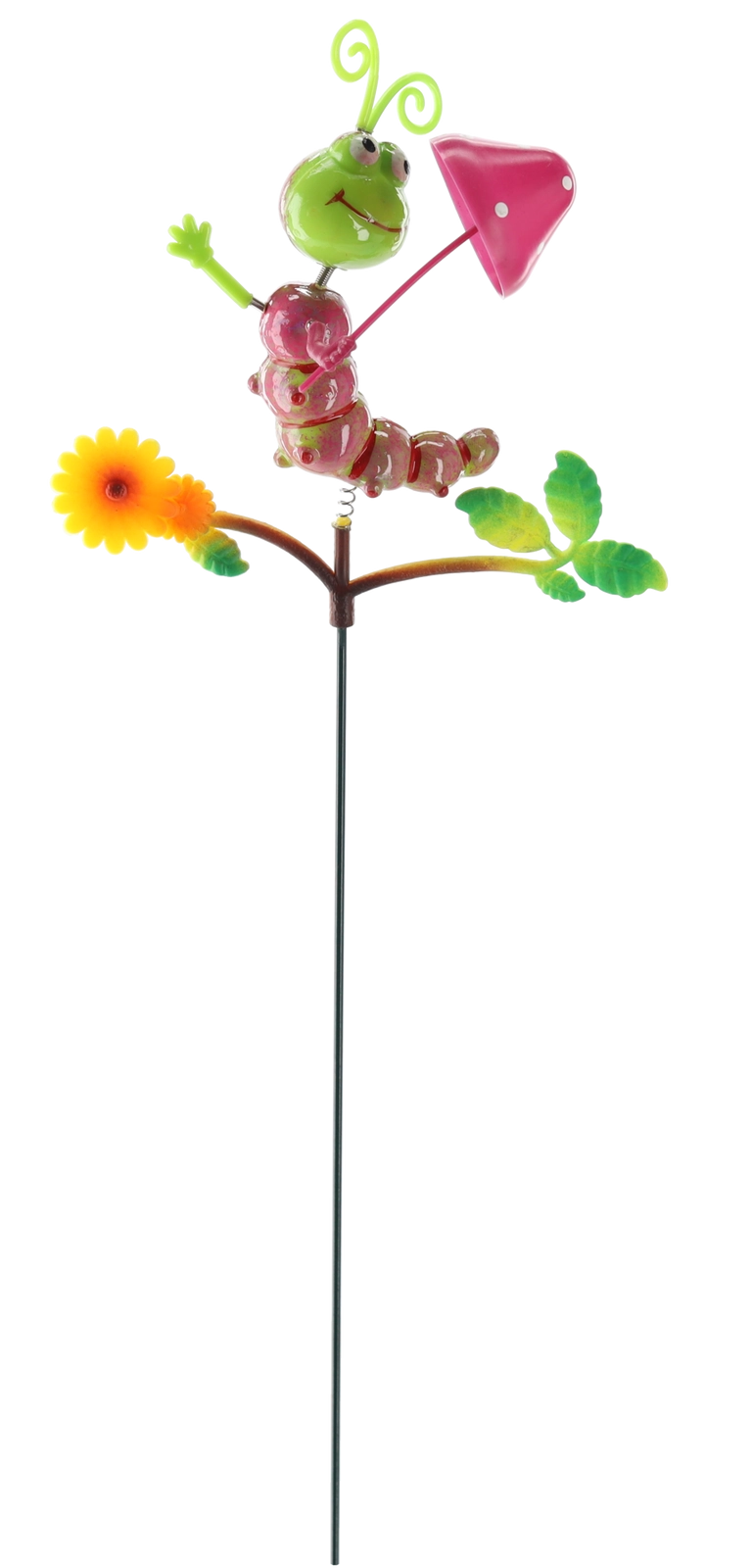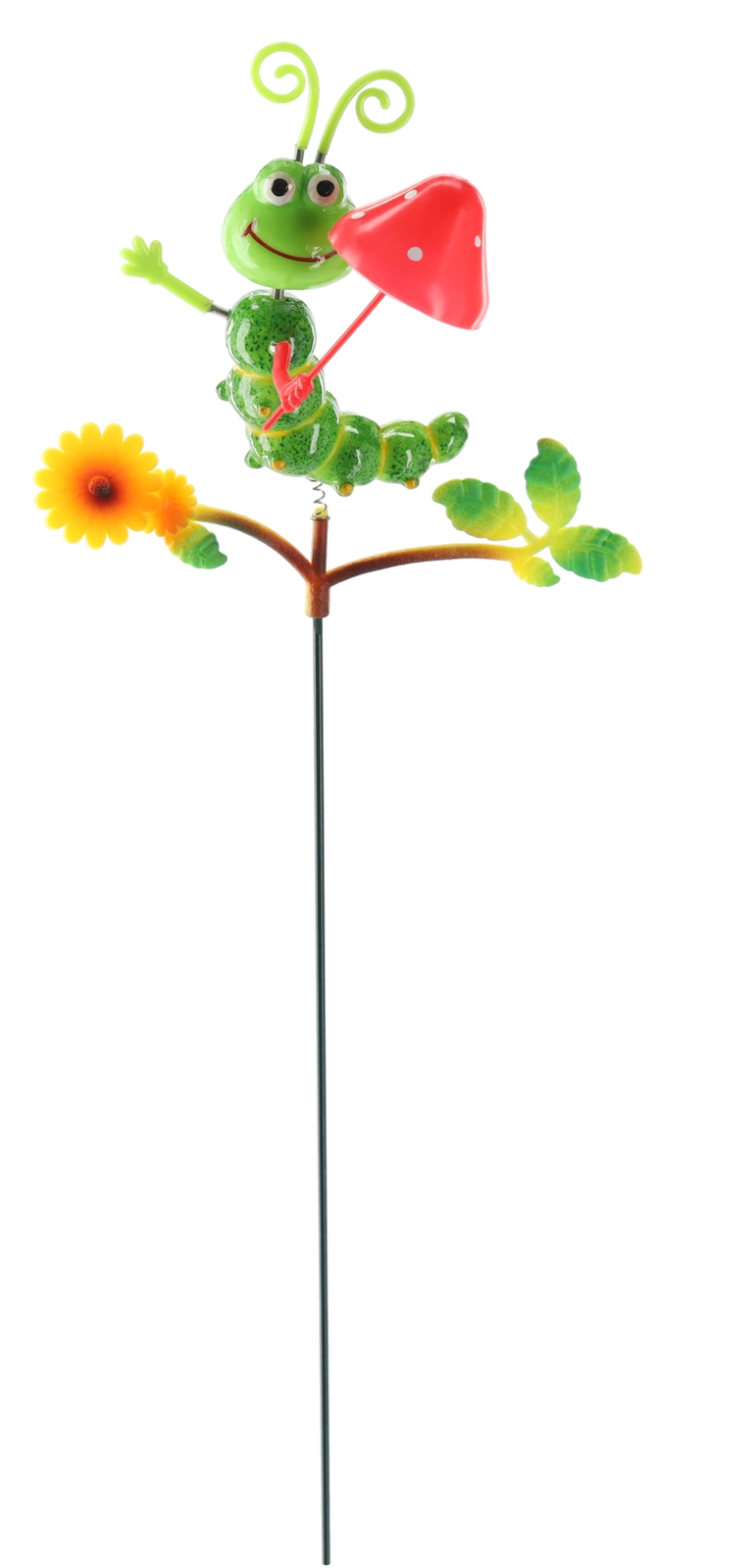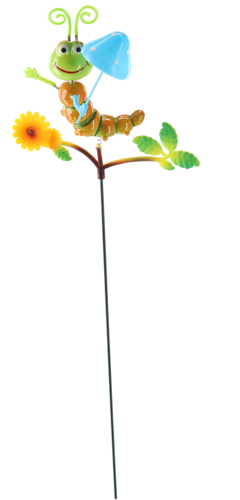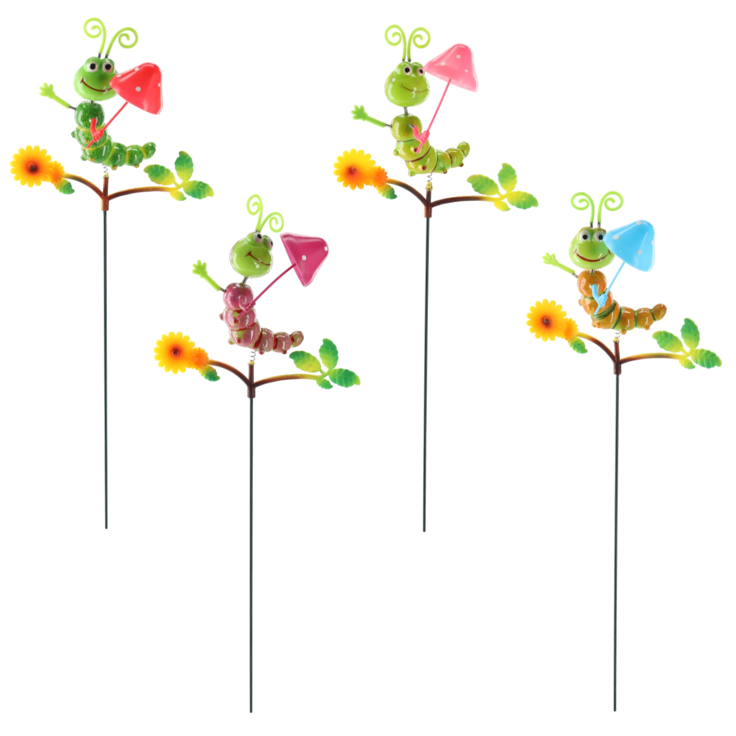 Schattige tuinversiering in de vorm van een rups op een metalen prikker geeft elke border en bloempot een speelse touch. Kleurrijk beschilderd metaal, vier varianten en een duurzame afwerking voor buiten zorgen voor langdurig plezier. Eenvoudig in de grond te steken dankzij de lange prikker en decoratieve details zoals bloem en blaadjes maken van deze versiering een opvallend accent in je tuin.