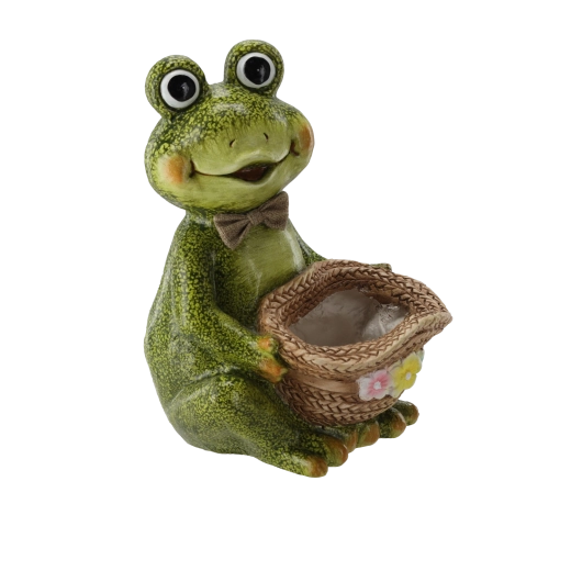 De stijlvolle bloempot in de vorm van een kikker met hoed geeft je buitenruimte een uniek karakter. Hij is ontworpen om weersinvloeden te weerstaan en biedt veilig plaats aan een brede variëteit aan planten. Het speelse uiterlijk trekt de aandacht en creëert een aangename sfeer in tuin, op balkon en terras.
