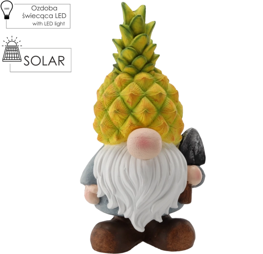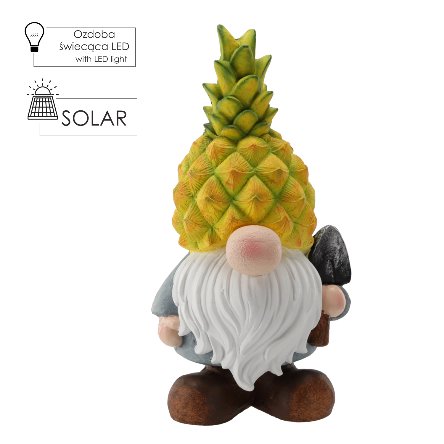 Deze schattige kabouter met ananasmuts is een decoratie die zowel overdag als ’s nachts in het oog springt. Het ingebouwde zonne-LED licht laadt overdag op via de zon en zorgt na zonsondergang voor een knusse ambiance zonder netstroom.