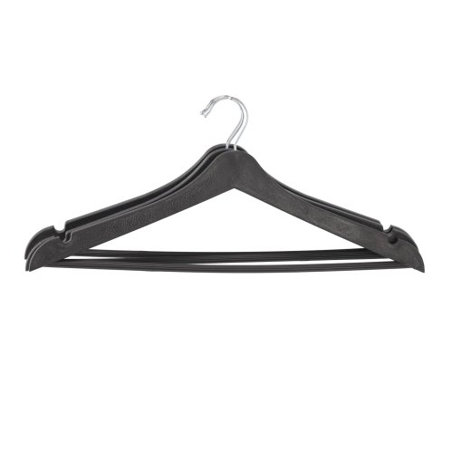 Het slanke profiel, inkepingen op de schouders en de dwarslat voor broeken of sjaals maken het mogelijk meerdere kledingstukken overzichtelijk op één plek op te hangen.