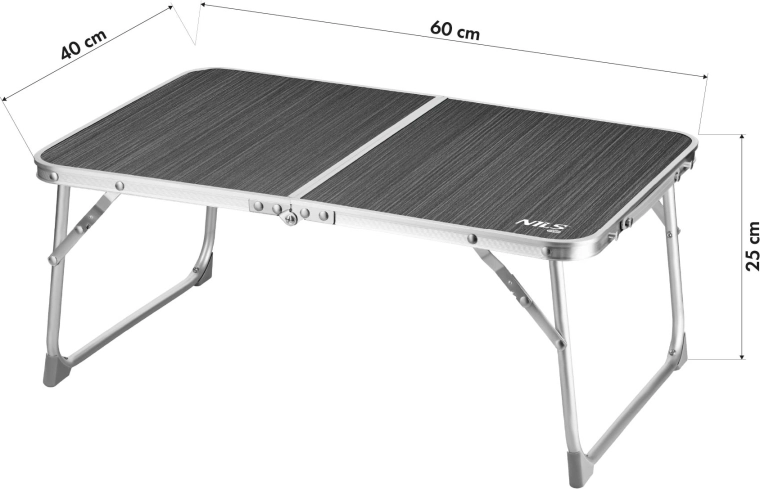Lichte en draagbare opvouwbare tafel met afmetingen 60 × 40 × 25 cm, ideaal voor kamperen, picknicks en reizen. Biedt een stabiel aluminium frame, een duurzaam MDF-blad en eenvoudig inklappen tot compacte afmetingen. Met een draagvermogen van 20 kg biedt hij een betrouwbare plek voor eten, drankjes en accessoires.