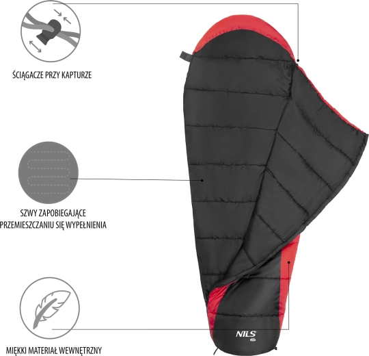 De lichte en warme mummieslaapzak van NILS Camp is ideaal voor kamperen en overnachten in koelere omstandigheden. Dankzij de mummievorm en de capuchon met trekkoord houdt hij de warmte uitstekend vast. Hij heeft een compressiehoes om ruimte te besparen, een tweerichtingsrits met tochtstrook om warmteverlies te voorkomen en een hoogwaardige isolatievulling van 300 g/m² voor een comfortabele nachtrust.