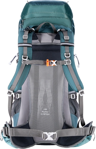 Gewatteerde schouderbanden, een in hoogte verstelbare borstband met fluitje en een heupband verminderen vermoeidheid. Het ademende paneel met stalen versteviging verbetert de ventilatie en stabiliteit.