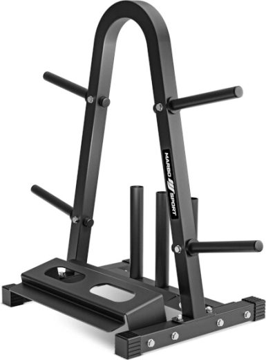 Houd orde in je homegym met de stabiele standaard voor schijven, stangen en dumbbells MARBO MH-S007. Biedt een draagvermogen van 300 kg, een stalen constructie 40×40 mm, 4 pennen voor schijven, 3 houders voor stangen en een legplank voor 2 dumbbells.