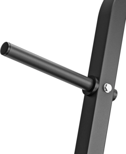 De MARBO MH-S007 is een compacte en duurzame standaard die helpt om dumbbells, schijven en stangen veilig en overzichtelijk op één plek te bewaren. De massieve stalen constructie met 40×40 mm profiel kan een belasting tot 300 kg aan, terwijl rubberen stoppers aan het uiteinde van de pennen het oppervlak van de constructie tegen krassen beschermen.