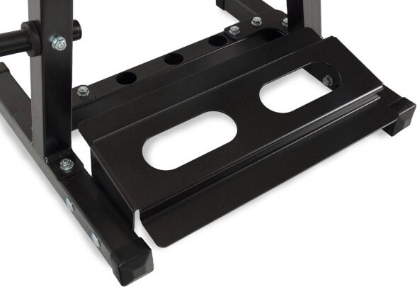 Houd je homegym perfect geordend. De standaard voor schijven en stangen Marbo Sport MH-S207 combineert hoge stabiliteit, maximale functionaliteit en een lange levensduur. De robuuste stalen constructie met 40×40 mm profielen is getest volgens strenge Europese normen en kan tot 300 kg belasting aan.