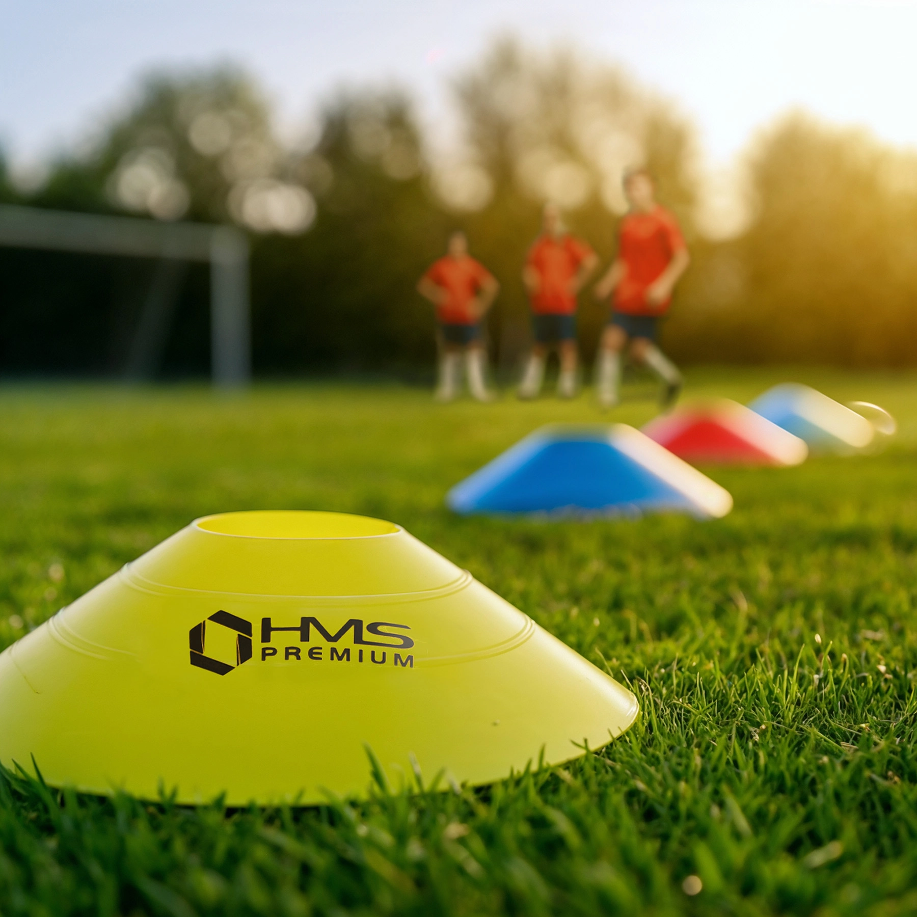 De set afbakenschijven HMS PREMIUM is ideaal voor voetbal, atletiek, fitness en schoolsport. Dankzij het duurzame verzachte PVC zijn de schijven bestendig tegen platdrukken en behouden ze hun vorm, zelfs bij intensief gebruik. De kleurvarianten verhogen de zichtbaarheid en helpen om zones, routes of trainingsstations overzichtelijk te markeren.
