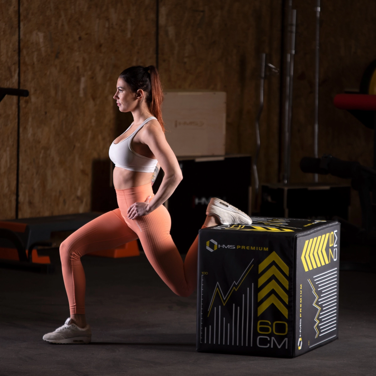 De HMS Premium plyo box combineert een zachte EPE-kern met een duurzame PVC-bekleding voor zekerheid tijdens intensieve plyometrische training. De schuimdichtheid is ontworpen om intensieve sprongen te weerstaan en tegelijkertijd het risico op schaafwonden en blessures bij een mislukte landing te minimaliseren. Eén box biedt drie hoogtes – 75, 60 en 50 cm – en dekt daarmee warming-up, kracht- én explosieve oefeningen.