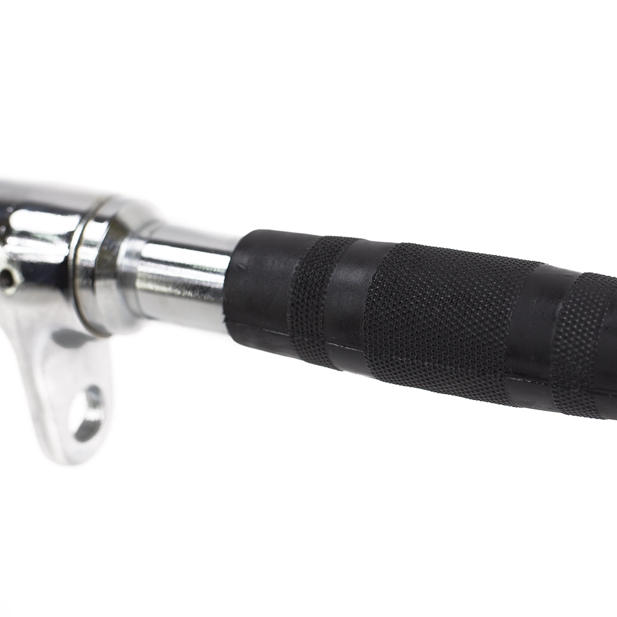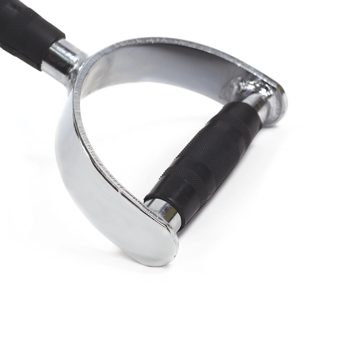 Meerdere greepposities (smal, medium, breed) maken variatie in spieraandacht mogelijk ten opzichte van rechte adapters en zorgen voor gevarieerdere trainingen. De massieve stalen constructie biedt een lange levensduur en stabiliteit, ook bij intensief gebruik in zowel home- als commerciële gyms.