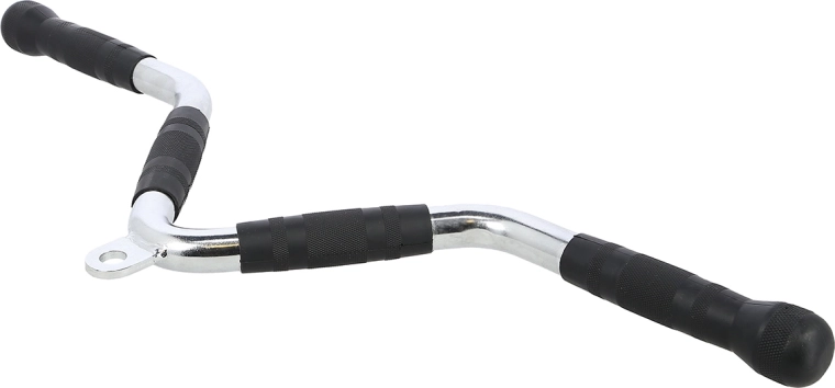 De robuuste, verchroomde constructie met een centraal oog van 14 mm diameter zorgt voor een snelle en veilige bevestiging aan alle gangbare katrolmachines. Verschillende hart-afstanden en griplengtes maken een natuurlijke instelling mogelijk voor oefeningen zoals lat pulldowns, seated rows en triceps pushdowns, voor maximale spieractivatie zonder compromissen.