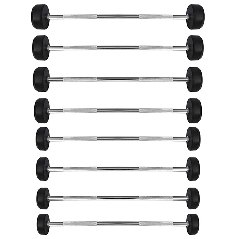 Dankzij de vast gemonteerde koppen is de stang altijd klaar voor gebruik – zonder schijven te hoeven plaatsen. De lengte van 115,5 cm en een greepdikte van 30 mm garanderen stabiliteit en comfort tijdens het trainen. Perfect voor biceps- en tricepsoefeningen, presses, rows en technische drills met lagere belasting.