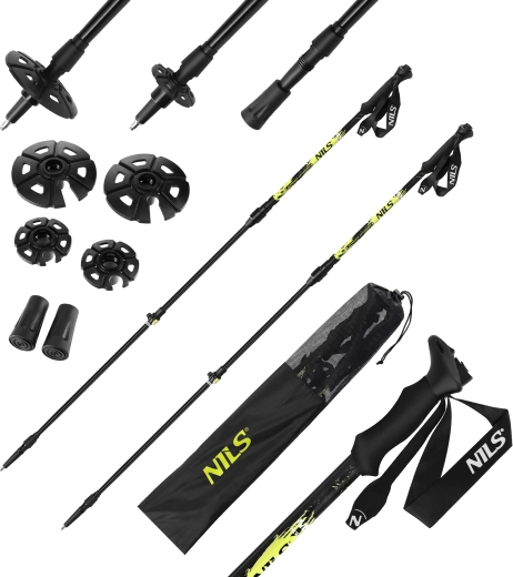 NILS TK8608 zijn betrouwbare trekkingstokken voor zowel veeleisende als recreatieve wandelaars. Het premium aluminium 7075 garandeert uitzonderlijke weerstand tegen buigen en slijtage met behoud van een laag gewicht. De automatische lengte-instelling met knop boven op de handgreep laat je snel inspelen op veranderingen in helling en terrein zonder te stoppen.