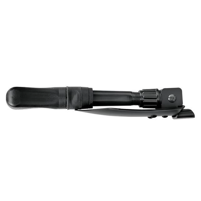 In opgevouwen toestand meet hij slechts 23 cm, zodat hij gemakkelijk in een rugzak of dashboardkastje past. De geïntegreerde hamer aan het uiteinde van de handgreep is praktisch bij het opzetten van het kamp – vooral voor het inslaan van haringen. De meegeleverde nylon hoes beschermt het gereedschap en vergemakkelijkt het dragen.