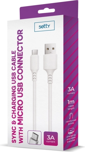 De praktische Setty USB–microUSB-kabel is ideaal voor dagelijks gebruik thuis, op kantoor en onderweg. Hij biedt een stabiele verbinding tussen telefoon, powerbank, oplader of computer en ondersteunt dankzij de maximale stroom van 3 A sneller opladen van compatibele apparaten.