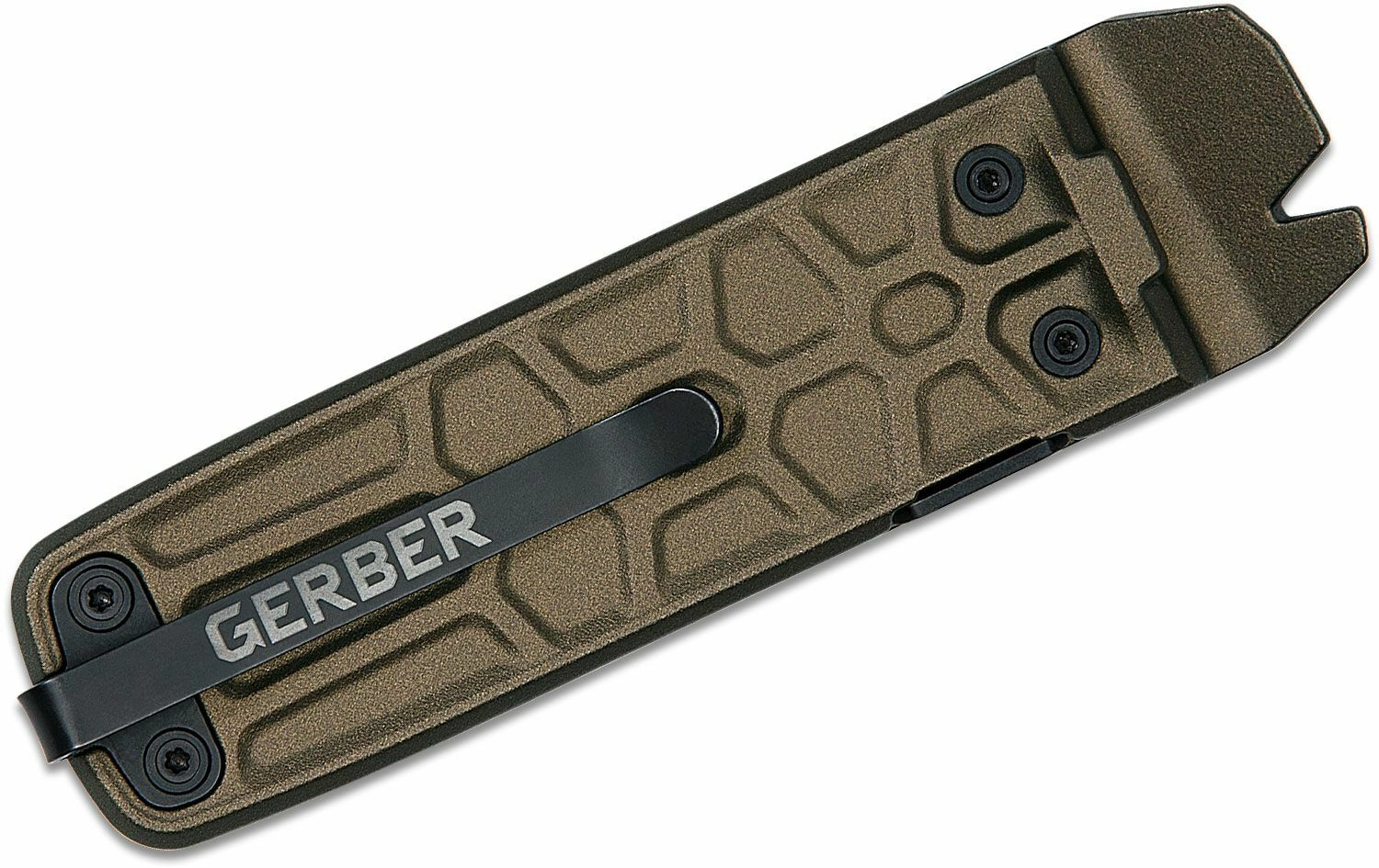 Dankzij het aluminium heft in bronzen kleur en de praktische clip klem je hem eenvoudig aan je zak of uitrusting. De Framelock zorgt voor veilig werken met het lemmet, terwijl platte schroevendraaiers, een prybar en een spijkertrekker de mogelijkheden thuis en outdoor uitbreiden.