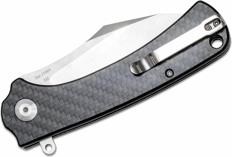 Openen gaat snel en soepel met de flipper; zekerheid tijdens gebruik wordt gegarandeerd door de linerlock. De ergonomische handgreep van koolstofvezel in grijs ligt uitstekend in de hand, terwijl de broeksclip en het koordoog het dagelijks dragen vergemakkelijken.