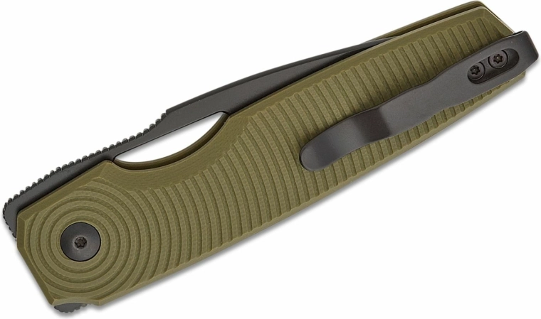 De compacte EDC-mes Kizer Dogfish biedt een combinatie van duurzaamheid, betrouwbaarheid en draaggemak. Hij heeft een lemmet van het nieuwe staal Nitro V met een zwarte coating, een veilige Button Lock-vergrendeling en een lichtgewicht, getextureerd handvat van G10 in groen met een broekklem.