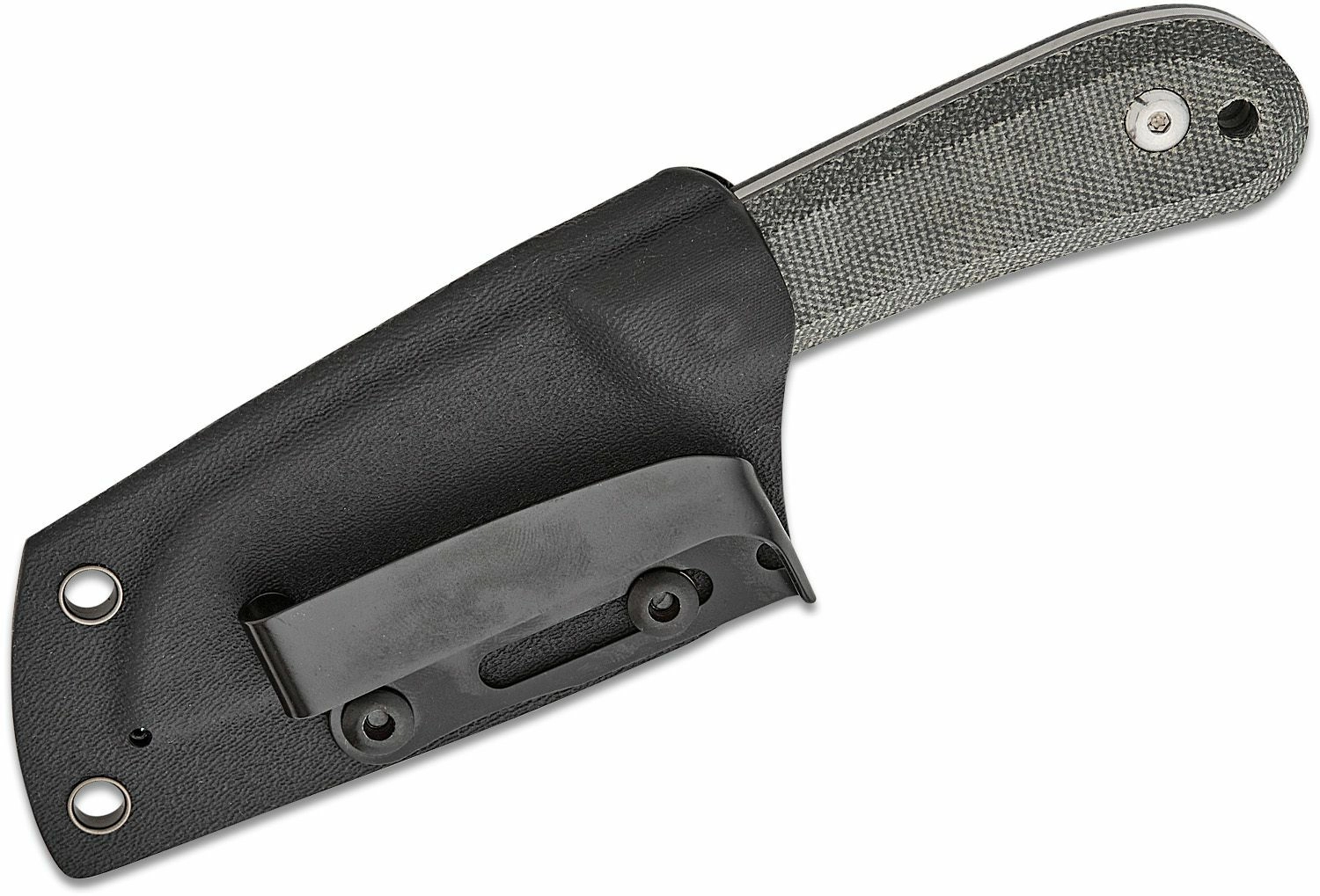 Het handvat van Micarta in zwarte kleur met een stevige G10-kern ligt goed in de hand en zorgt voor een betrouwbare grip, ook onder zwaardere omstandigheden. Een praktische koordoog maakt het bevestigen van paracord of een zekeringlus mogelijk. In de verpakking zit een Kydex schede voor veilig en comfortabel dragen.