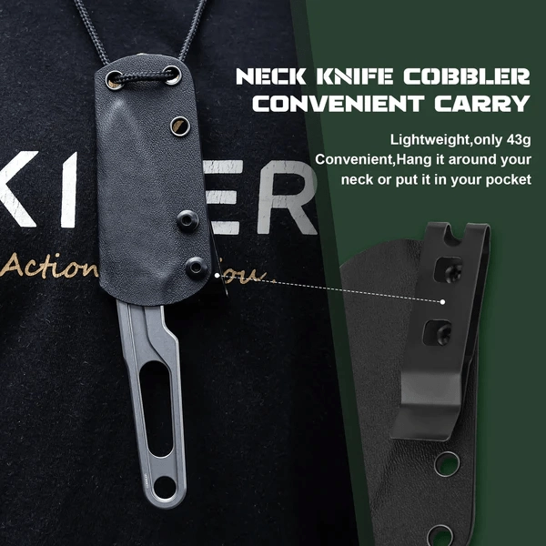 De volwaardige full-tang constructie, jimping op de rug voor duimcontrole en de mogelijkheid voor paracord-omwikkeling maken de Cobbler tot een betrouwbaar EDC-gereedschap voor het openen van dozen, het snijden van touwen en precies uitsnijden. De meegeleverde Kydex schede met riembevestiging of draagopties biedt veilige opslag en snelle toegang.