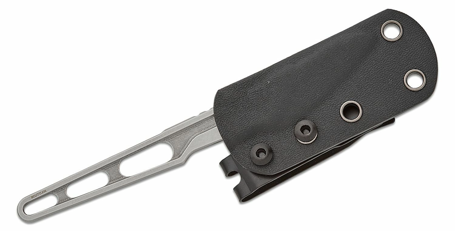 In de verpakking zit een Kydex schede die zorgt voor veilige opslag en snelle toegang tijdens dagelijkse activiteiten. Met de compacte lemmetlengte van 5,2 cm is hij ideaal voor precieze sneden, kleine taken en discreet dragen.