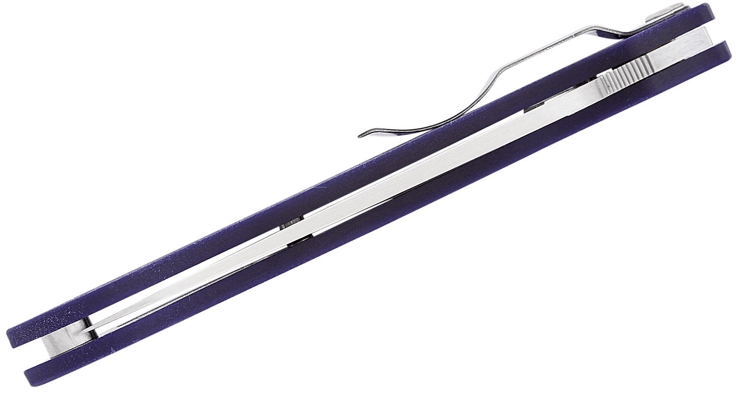 Het gepatenteerde Compression Lock verhoogt de sterkte van de vergrendeling en zorgt tegelijk voor veilig sluiten zonder je vingers in de baan van het lemmet te hoeven plaatsen. Het getextureerde G10 in donkerblauw is uiterst duurzaam en biedt een zekere grip in vrijwel alle omstandigheden.