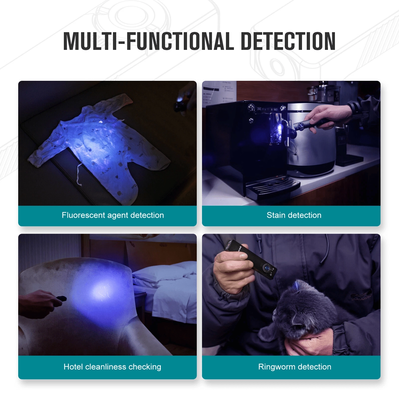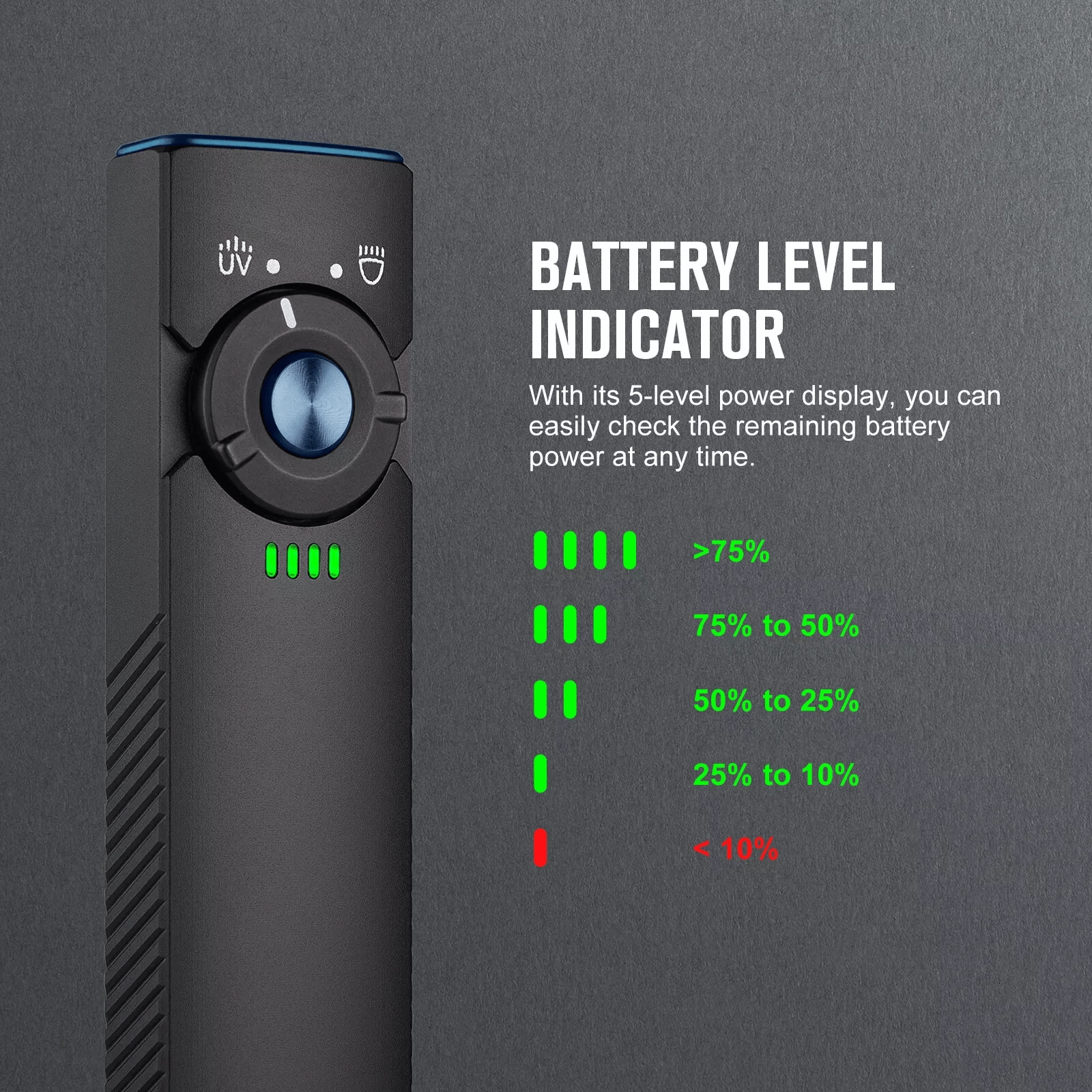 Schakel tussen neutraal wit licht met een output tot 1.000 lm voor dagelijks gebruik en krachtig UV-licht van 365 nm (580 mW) voor controle van bankbiljetten, detectie van vervuiling of mineralen.