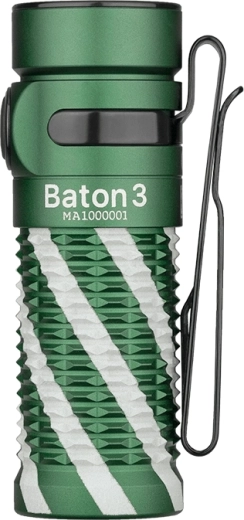 De OLIGHT Baton 3 in de Christmas Green-editie is de verbeterde opvolger van het model S1R Baton II. De krachtige LED in combinatie met TIR-optiek creëert een zachte, gebalanceerde bundel met een perfect gedefinieerde hotspot voor comfortabel zicht. De voeding wordt verzorgd door een aangepaste IMR16340-accu van 550 mAh met praktisch magnetisch USB-opladen (MCC 1A/MCC3).