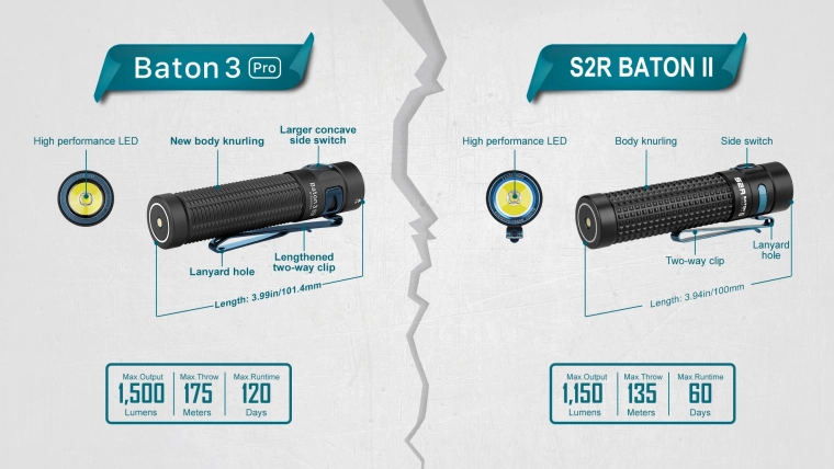 De OLIGHT Baton 3 Pro CW is een krachtige maar zakformaat zaklamp, ideaal voor dagelijks gebruik, werk en outdoor. Hij levert een lichtstroom van 1.500 lm met een reikwijdte van 175 m en een extreme werktijd tot 120 dagen in lage standen. Dankzij het compacte formaat (lengte 10,13 cm) en het gewicht van 103 g past hij gemakkelijk in je hand, zak of rugzak.