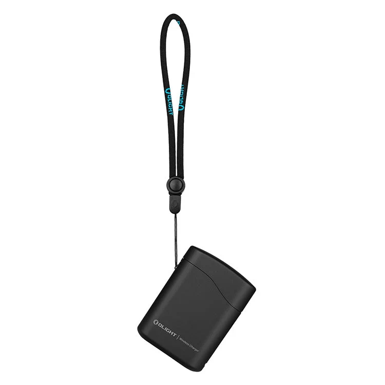 De draadloze case met een 5000 mAh accu beschermt de lamp en houdt hem energiek stand-by – plaats de lamp erin en het laden start automatisch. De case laad je op via USB‑C en heeft een LED‑indicatie van het laadsniveau. De zaklamp zelf biedt 5 helderheidsmodi + stroboscoop, heeft geheugen voor de laatste modus, timers van 3/9 minuten en een praktische moonlight van 0,5 lm voor gebruik in de nacht.