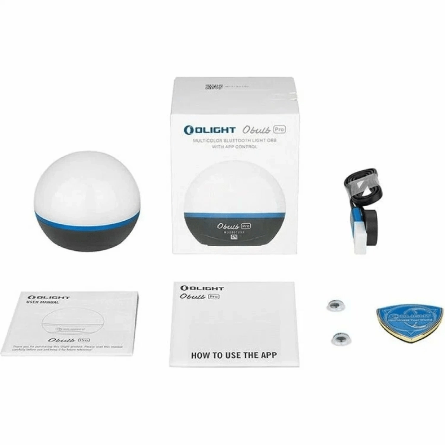 De OLIGHT Obulb Pro S is een slimme draagbare LED-lamp met wit licht en RGB-effecten, die je eenvoudig bedient via de Olight Hub-app met Bluetooth en via de onderste knop. Dankzij de magnetische onderzijde en het meegeleverde zelfklevende metalen plaatje bevestig je haar op de meeste gladde oppervlakken – thuis, in de auto of in de tent.