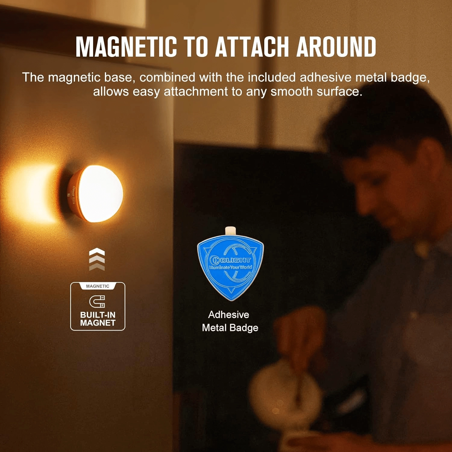 - Magnetische bevestiging en eenvoudige bediening met één knop met vloeiende helderheidsregeling.