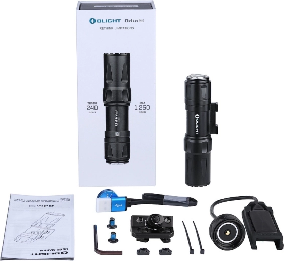 De OLIGHT Odin Mini is een professionele oplaadbare LED-zaklamp ontworpen voor tactische inzet. Dankzij de PMMA-optische lens haalt hij een lichtopbrengst van 1250 lm met een precieze bundel en een bereik tot 240 m. De achterschakelaar fungeert als magnetische oplaadpoort én bedieningsknop, terwijl de elektronica beschermt tegen oververhitting en het licht na 2 minuten in turbomodus stabiliseert op 900 lm.