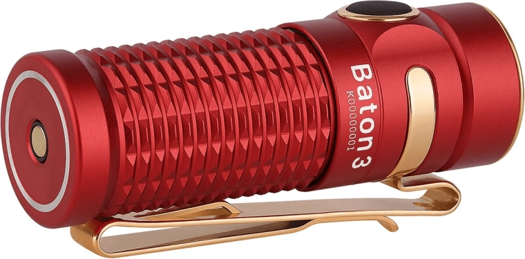 Extreem compacte zaklamp OLIGHT Baton 3 Rood in limited edition met tot 1.200 lm, een bereik van 166 m en comfortabel magnetisch opladen. Een robuuste behuizing van aluminiumlegering met nieuwe antisliptextuur, omkeerbare clip voor dragen en een magnetische voet voor handsfree gebruik maken de Baton 3 tot het perfecte EDC-licht voor elke dag.