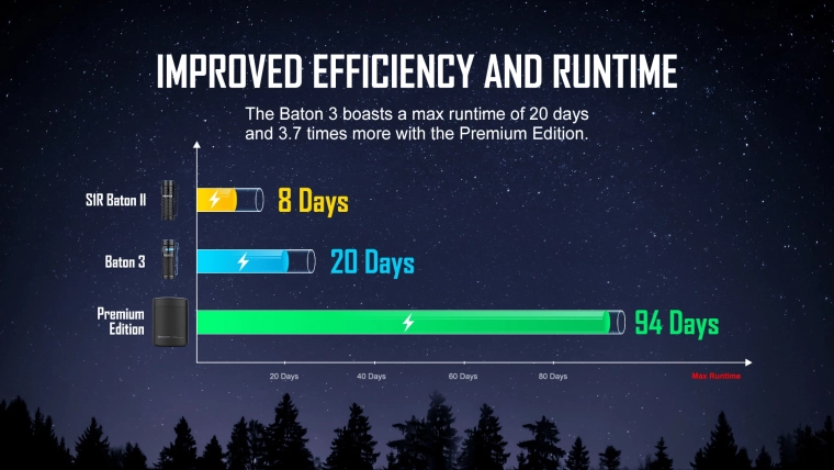 • 5 lichtniveaus + stroboscoop voor elke situatie (tot 20 dagen looptijd in Moonlight-modus).
