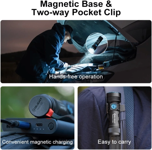 De OLIGHT Seeker 4 Mini is een krachtige EDC-zaklamp die compacte afmetingen combineert met functies voor professioneel en vrijetijdsgebruik. De combinatie van een koelwitte LED en UV-licht 365 nm maakt zowel sterke verlichting van de omgeving als snelle detectie van vervuiling, markeringen en fluorescerende elementen mogelijk.