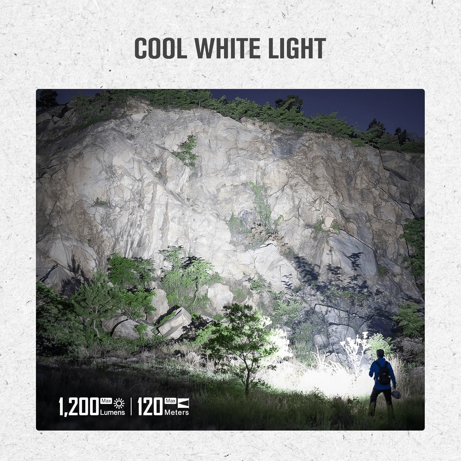 Dankzij een maximaal vermogen van 1200 lm, een gebruiksduur tot 12 dagen in de maanlichtmodus en magnetisch USB-opladen is hij altijd klaar om te gaan. De robuuste behuizing van aluminiumlegering, IPX8-waterdichtheid en valbestendigheid tot 1,5 m garanderen betrouwbaarheid in het veld. De praktische tweewegclip en het antisliplichaam maken dragen en bediening met één hand eenvoudig.