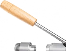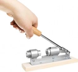 De stabiele houten basis houdt het apparaat stevig op het werkblad, waardoor het kraken snel, precies en veilig verloopt. Bediening van bovenaf vraagt minder kracht dan klassieke tang-notenkrakers en maakt langdurig gebruik makkelijker.