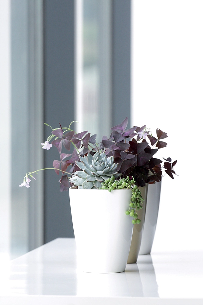 De moderne vierkante vorm en het strakke design passen perfect bij uiteenlopende arrangementen in huis, op het terras en op de vensterbank.