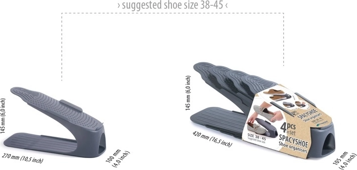 De organizers zijn gemaakt van duurzaam kunststof met een laag gewicht maar voldoende stabiliteit. Dankzij de neutrale antracietkleur passen ze perfect in zowel moderne als klassieke interieurs. Geschikt voor dagelijks gebruik in schoenenkasten, kleedruimtes en gangen.