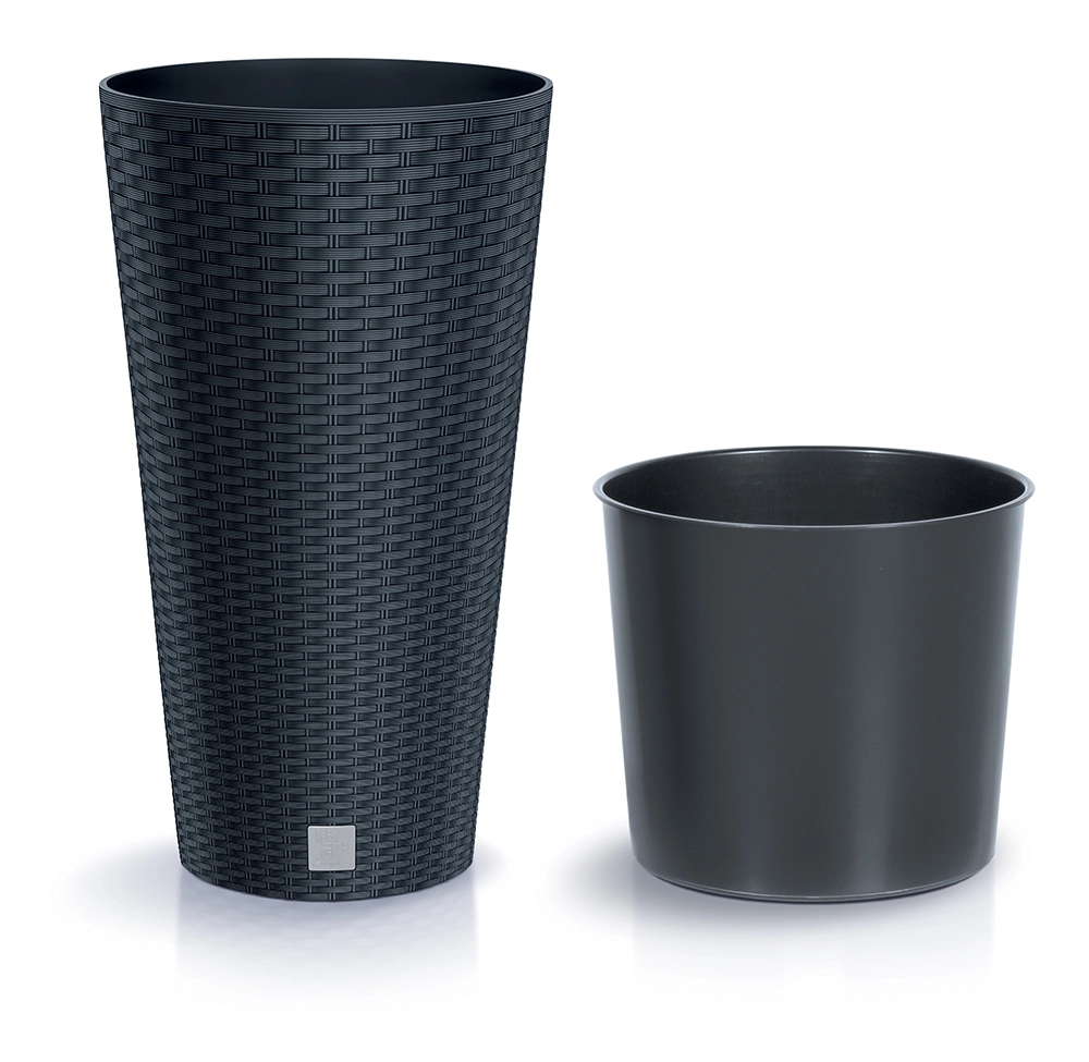De stijlvolle Rato Tubus bloempot geeft je huis, terras of balkon een moderne uitstraling dankzij de rotanstructuur. De duurzame kunststof met UV-bescherming garandeert kleurvastheid en blijft tegelijk licht en makkelijk draagbaar. De praktische binneninzet vereenvoudigt verpotten en het regelmatige onderhoud van planten.