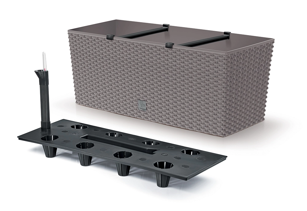 Ontdek een stijlvolle bloembak met rotantextuur die perfect past op balkon, terras en vensterbank. Robuust kunststof garandeert bestendigheid tegen weersinvloeden en een stabiele kleur zonder vervagen. Dankzij het zelfwatergevende systeem blijft het substraat langer vochtig, waardoor je minder vaak water geeft en planten ook tijdens warme dagen floreren.