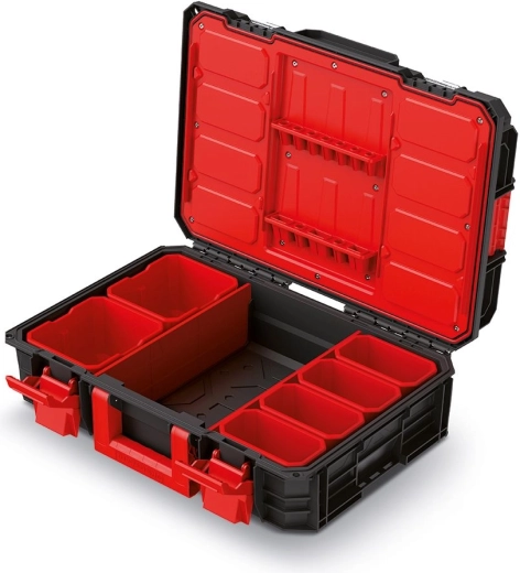 De robuuste X‑BLOCK PRO gereedschapskoffer is ontworpen voor professionals die betrouwbare en duurzame opslag van gereedschap eisen. Het modulaire systeem maakt het eenvoudig om meerdere koffers te koppelen met vergrendelelementen, terwijl de geribde constructie hoge weerstand tegen mechanische schade garandeert, zelfs bij dagelijks gebruik.